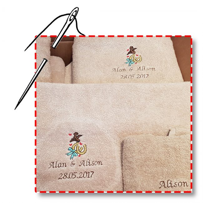 Our range of personalised towels and face cloths with custom embroidery options make the perfect wedding, anniversary, engagement or new baby gift.