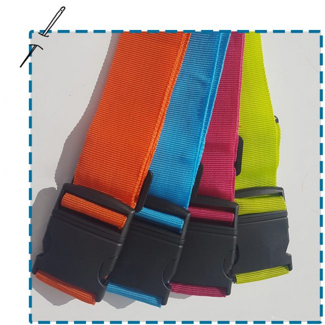 Luggage Straps Our range of personalised luggage straps will ensure you always arrive home with the correct bag or suitcase! Available in a range of fun, bright colours No set-up fee or minimum order